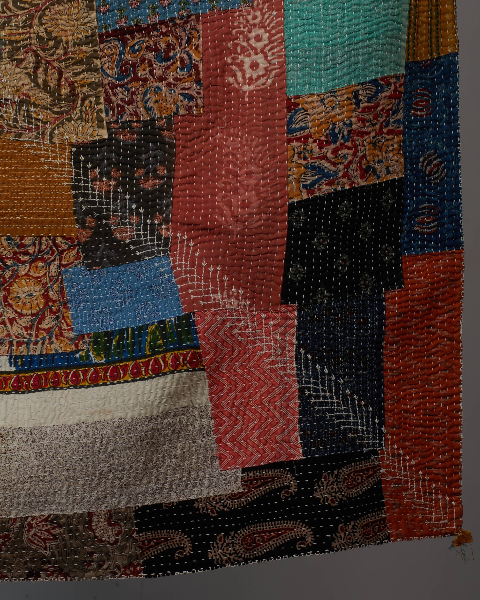 Soid Khowdi cushion cover, hand-quilted by the women of rural North Karnataka, honor tradition with delicate embroidery inspired by native flora and everyday life.